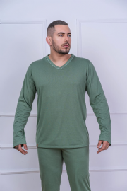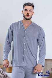 Pijama Brasiliano Pijama Brasiliano Pijama masculino meia estação, confeccionado em poliéster e viscose, composto por blusa com botão em gola v manga comprida e calça.