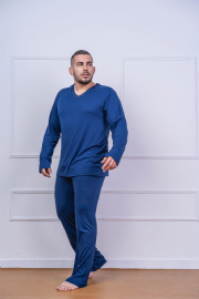 Pijama Masculino Comprido Pijama Masculino Comprido Pijama masculino meia estação, confeccionado em poliéster e viscose, composto por blusa manga comprida e calça. Possui blusa manga comprida lisa com gola em V. Calça com elástico no cós lisa, ambos na cor azul com acabamento e costura no tom ESPECIFICAÇÕES: COMPOSIÇÃO: 67% POLIÉSTER, 33% VISCOSE PRODUZIDO NO BRASIL INSTRUÇÕES DE LAVAGEM: Lavar com temperatura máxima de 40°C Não usar alvejante a base de cloro Passar com temperatura máxima de 150°C Não lavar a seco [O TOM DAS CORES DOS PRODUTOS NAS FOTOS PODEM SOFRER VARIAÇÕES EM DECORRÊNCIA DO FLASH] • Modelo veste peça tamanho: M SHORTS BLUSA TAMANHO CINTURA LARGURA PERNA ALTURA ALTURA LARGURA MANGA P 33CM 27CM 102CM 68CM 51CM 55CM M 35CM 28CM 103CM 71CM 54CM 57CM G 38CM 29CM 104CM 74CM 57CM 59CM GG 41CM 30CM 105CM 77CM 60CM 61CM EG 44CM 31CM 106CM 80CM 63CM 63CM